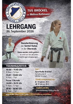 Lehrgang mit Melissa Rathmann am 26.09.2026 in der Sporthalle