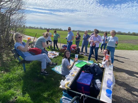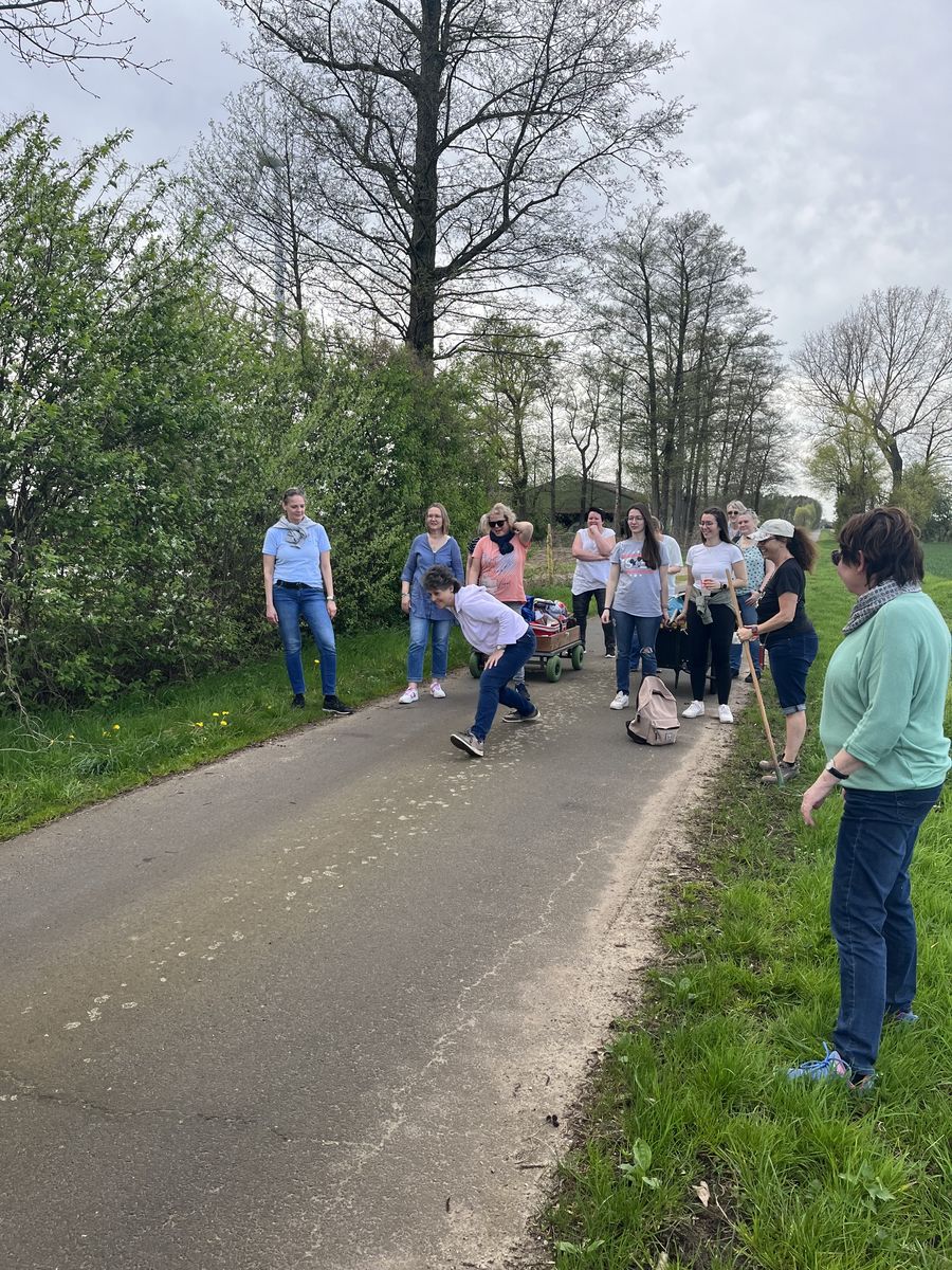 Bei der letzten Weihnachtfeier wurde beschlossen, dass mal wieder eine Boßeltour der Gymnastiksparte stattfinden sollte. Also wurde ein Aufruf gestartet und am 06.04.2024 trafen sich ca. 18 Frauen bei schönstem Sonnenwetter an der Sporthalle, um einen gemeinsamen Nachmittag beim Boßeln zu verbringen. Es wurde in 2 Gruppen aufgeteilt und dann ging es mit einer blauen und einer roten Kugel sowie mit 2 Bollerwagen, gefüllt mit allerlei Leckereien, los.